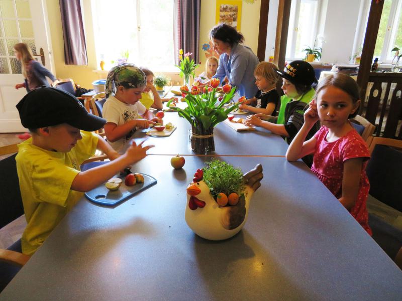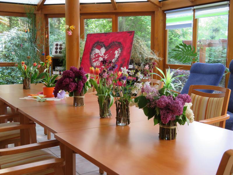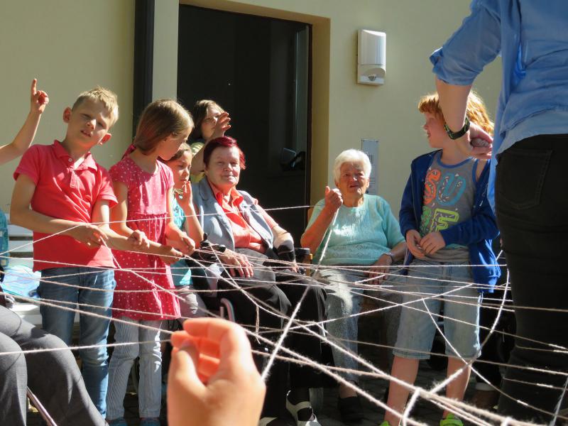 Die gelben Blitze bei der AWODen Senioren wurde ein bunter Frühlingsgruß in Form von Blumen und einem Obstsalat überbracht. Außerdem wurde von vielen Bewohnern mit den Schülern zusammen ein Spinnennetz gewebt.